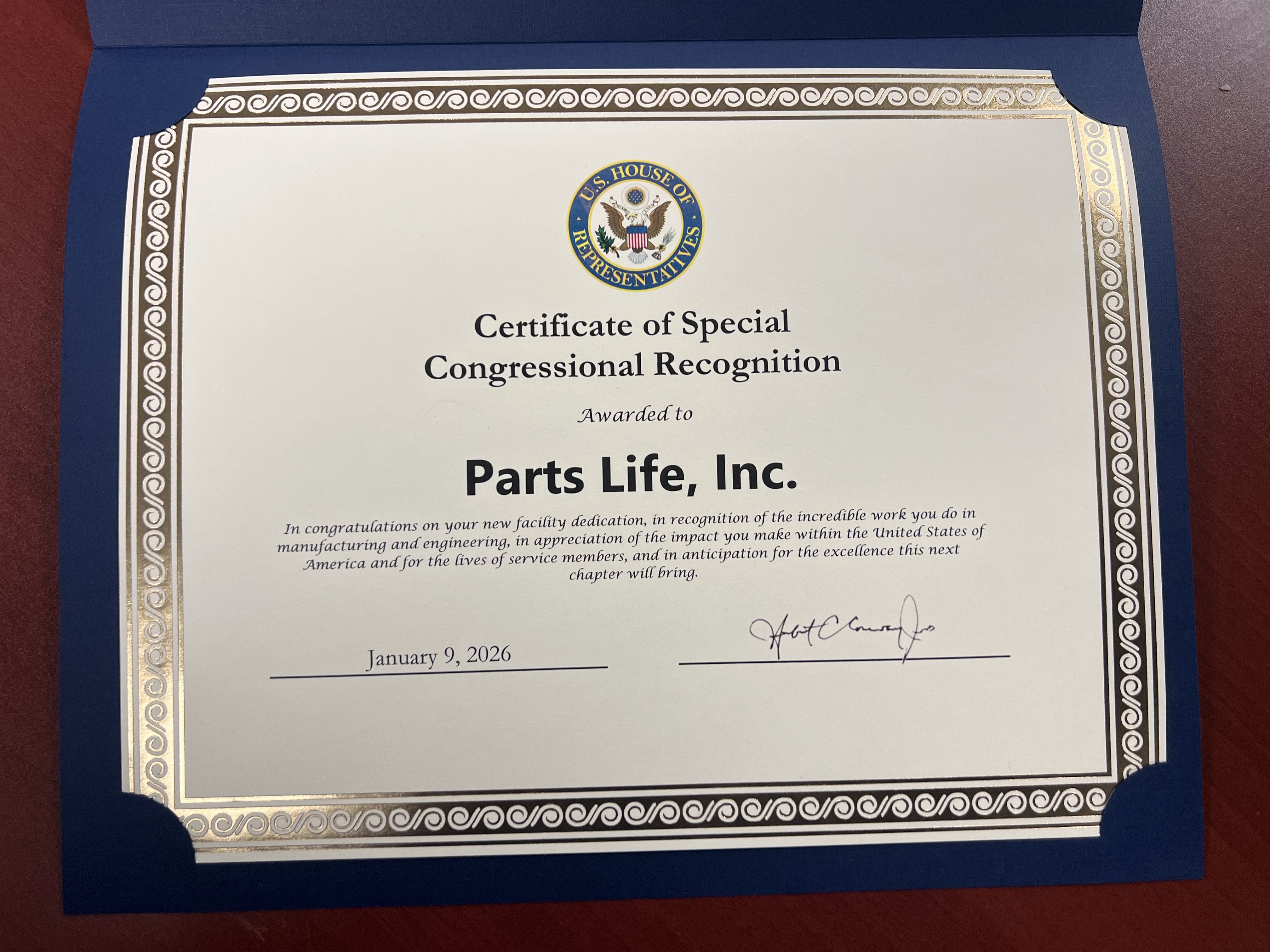 The program included remarks from Parts Life leadership and a keynote address from General Charles Hamilton, retired four-star U.S. Army General. Malana Homan-Hepner, representing the office of Herb Conaway, presented a congressional recognition honoring Parts Life, Inc. for its contributions to the defense industrial base and continued support of the warfighter.